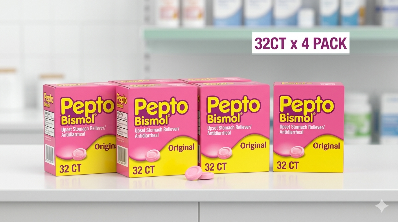 Stock your shelves with one of America’s most trusted over-the-counter stomach remedies. Each case includes 4 boxes of 32 chewable tablets (128 tablets total) of Pepto-Bismol — the iconic pink relief customers reach for by name.