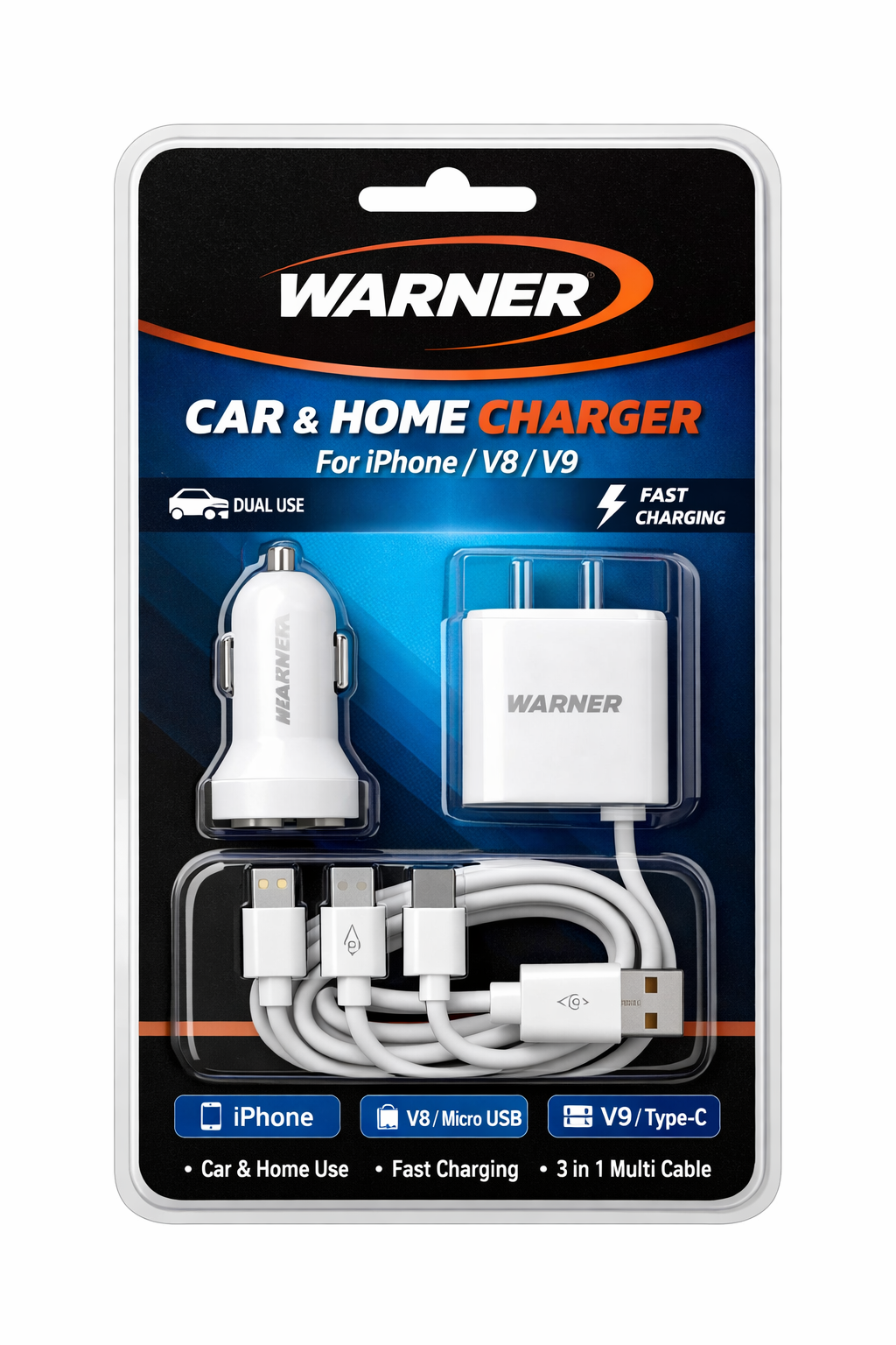 WARNER BLISTER iPhone / V8 / V9 Car & Home Charger